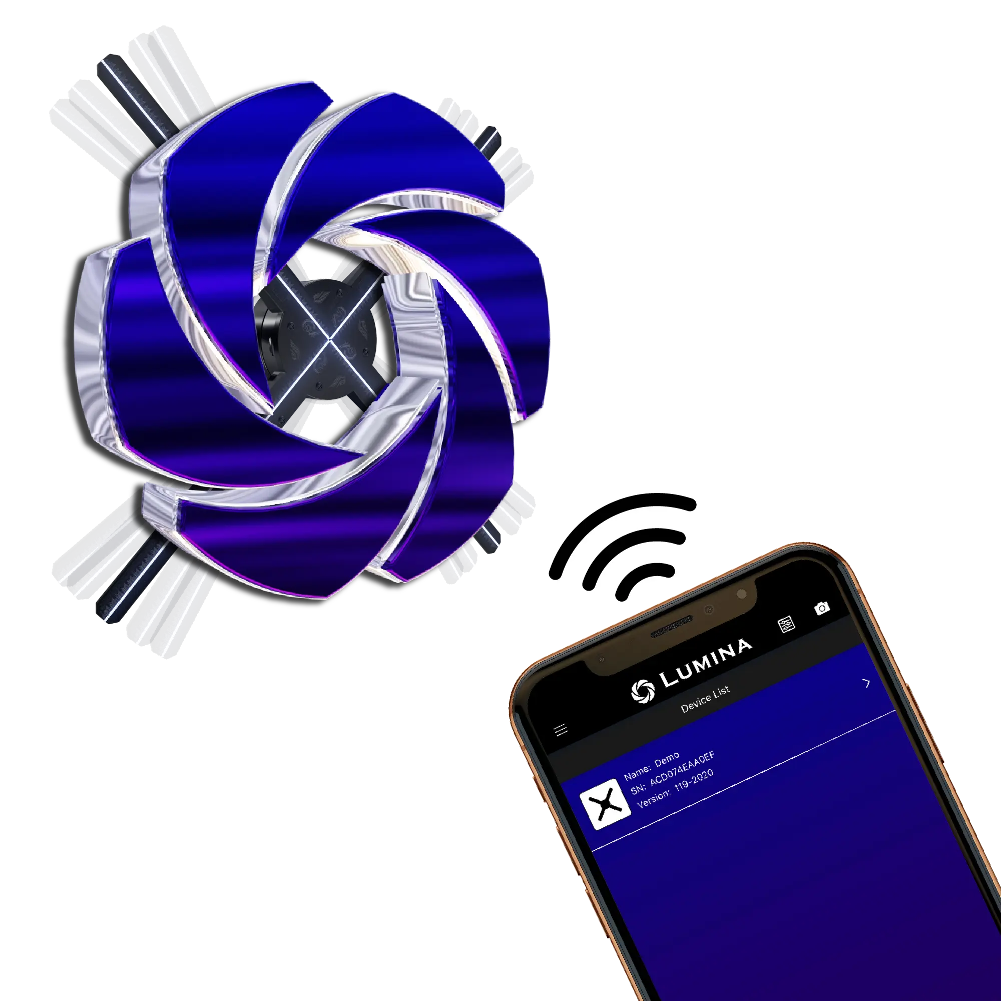 Fully set-up your holographic fan and navigate to the app store on IOS/Android to download and install our app.